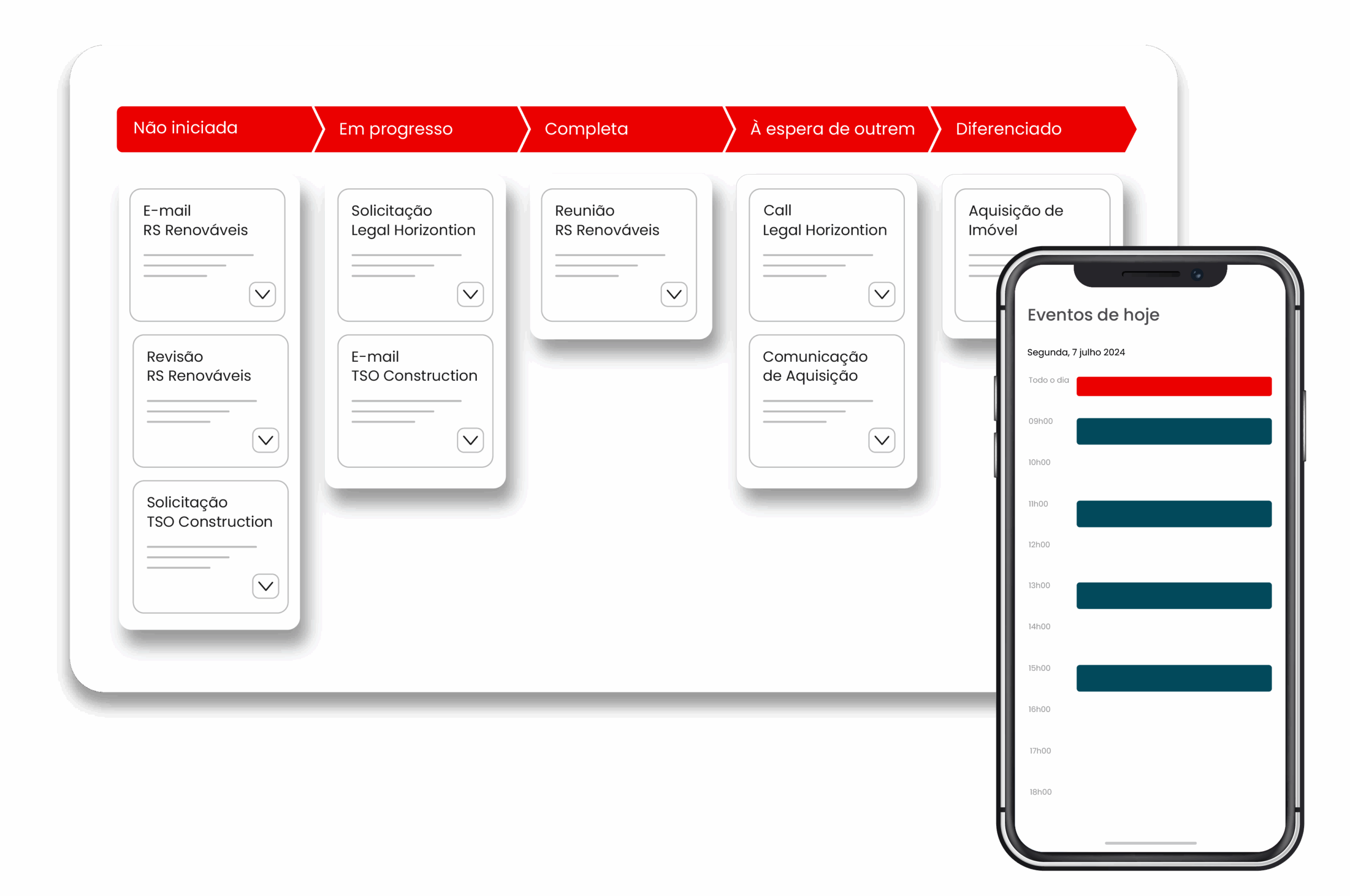 Visualize tarefas em formato Kanban, arraste, solte e reorganize atividades por estado (pendente, em curso, concluído ou com estados personalizados), de forma a manter o foco e a produtividade em alta.
