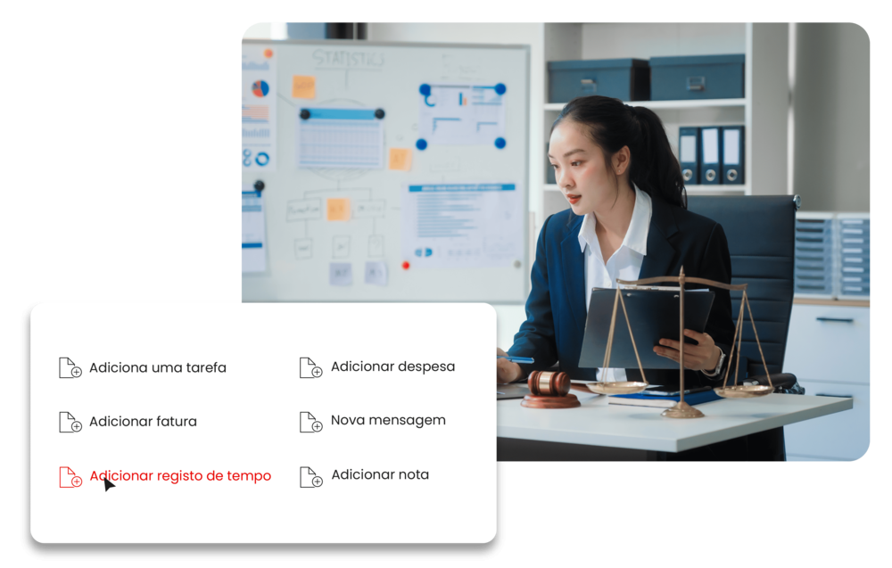 Mais eficiência da equipa jurídica, com automação de processos, comunicação integrada e otimização do fluxo de trabalho, aumentando a produtividade.