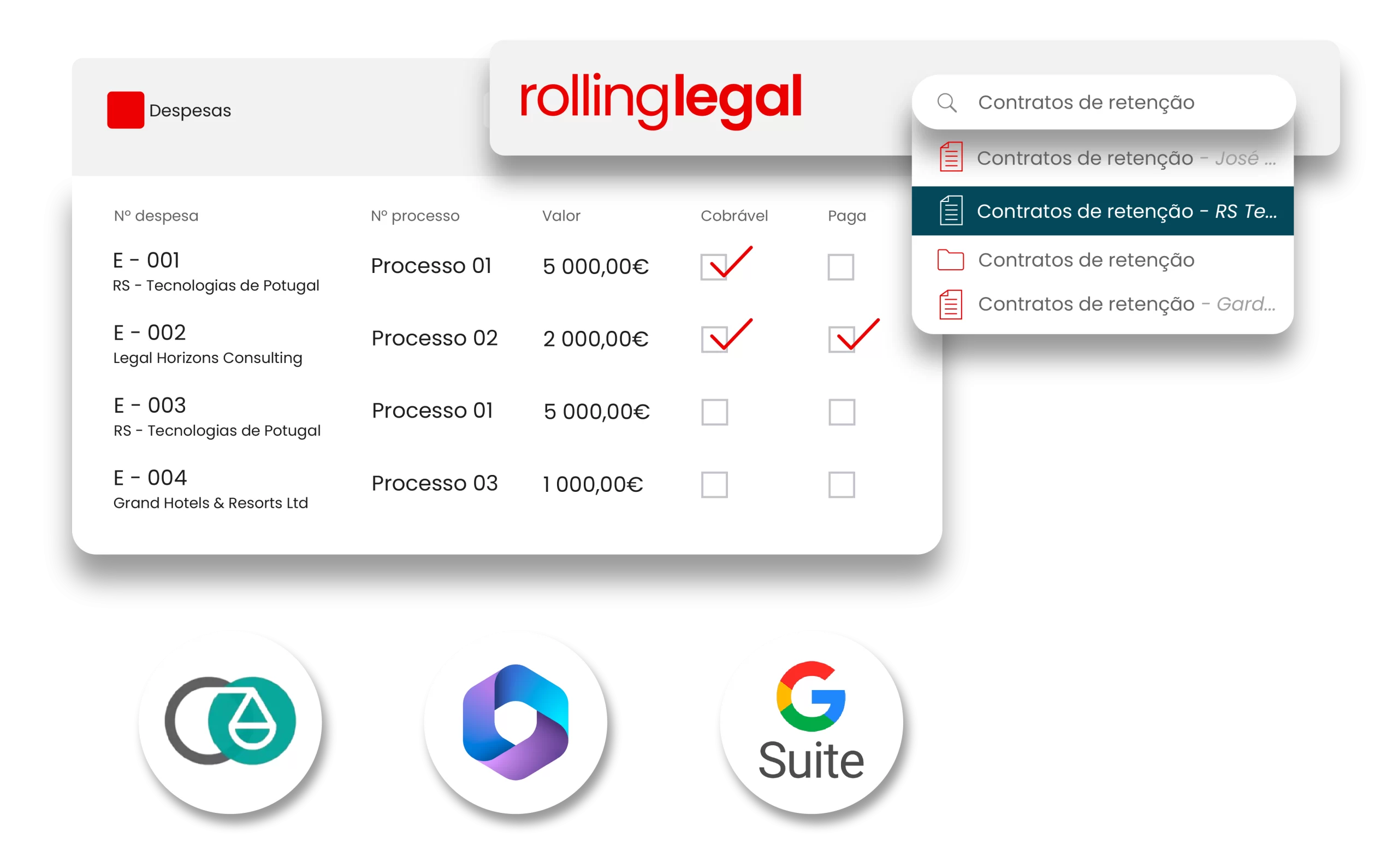 A integração com sistemas essenciais permite um fluxo de trabalho mais eficiente e sem barreiras. O Rolling Legal é compatível com Microsoft 365, SharePoint e Citius, garantindo uma experiência contínua e sem duplicação de esforços.