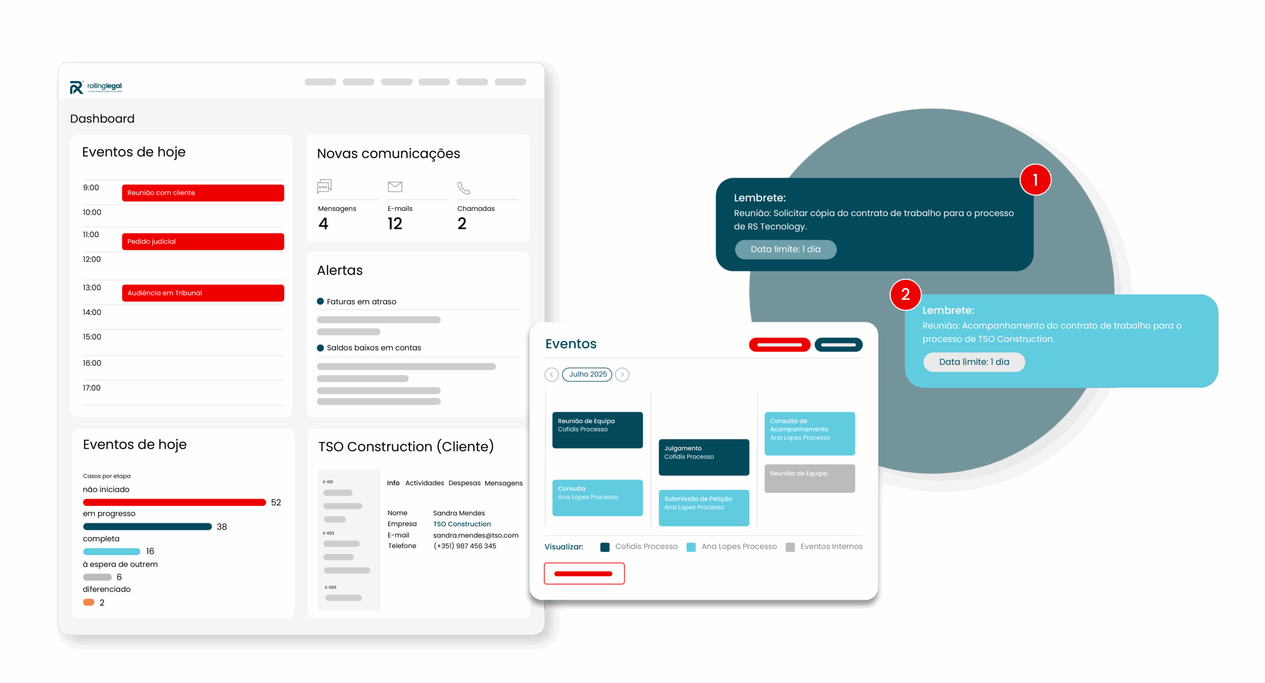 O Rolling Legal ajuda a planear e acompanhar reuniões com clareza, desde a definição da agenda até ao seguimento das decisões.