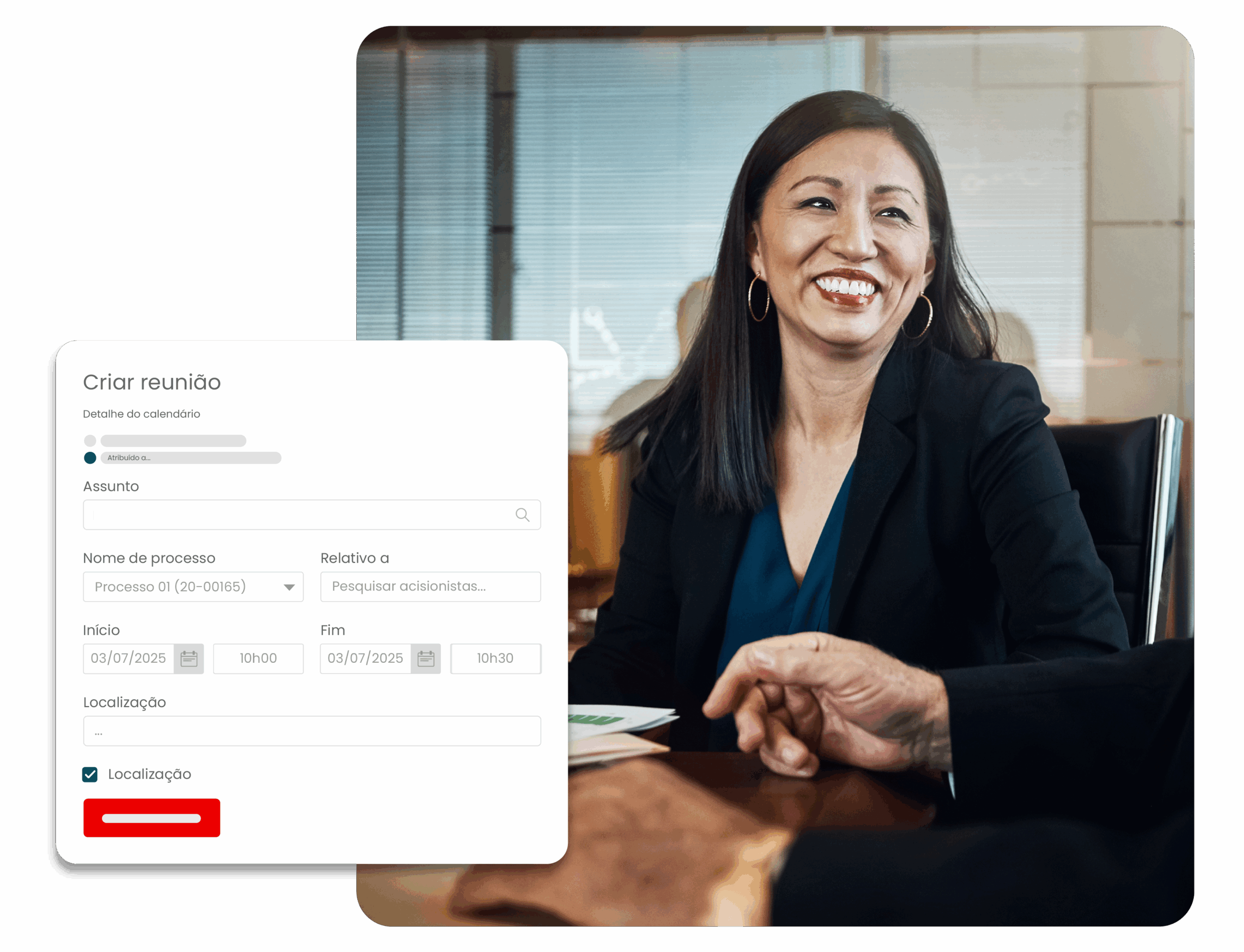 Agende, organize e acompanhe reuniões jurídicas sem complicações.
